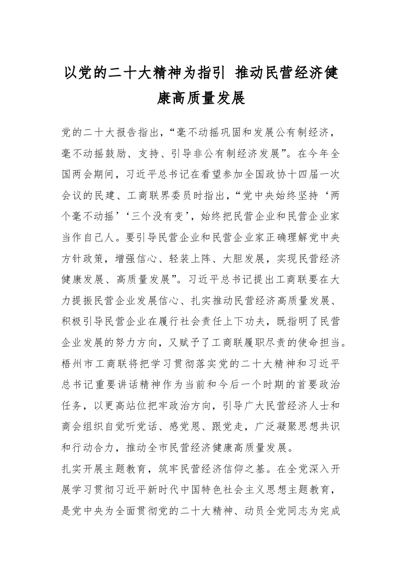 / 以党的二X大精神为指引 推动民营经济健康高质量发展