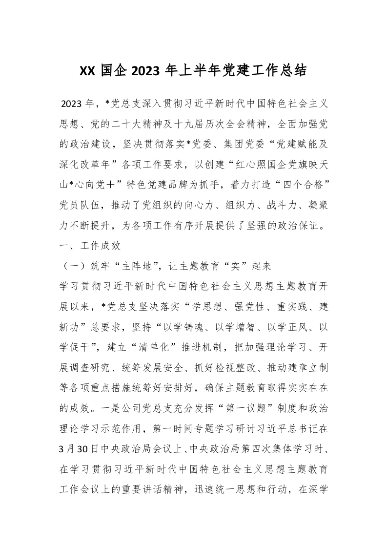 / XX国企2023年上半年党建工作总结