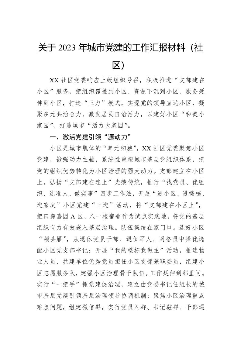 / 关于2023年城市党建的工作汇报材料(社区)