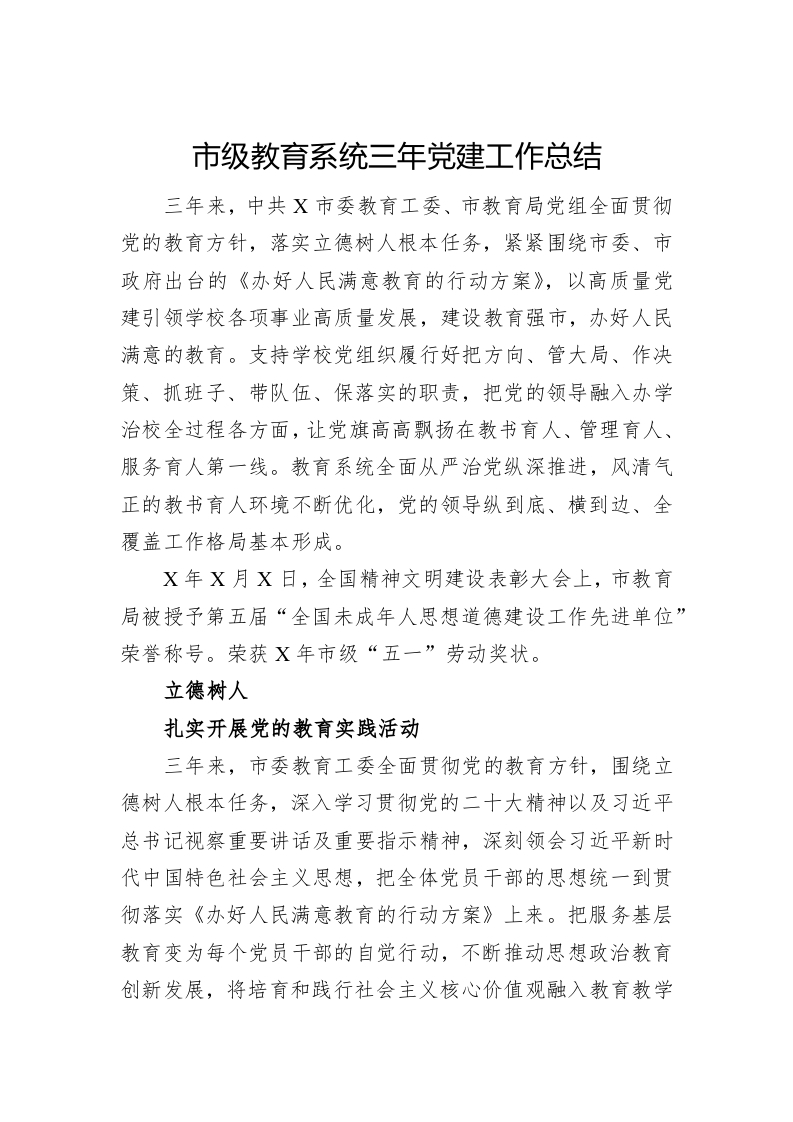 / 市级教育系统三年党建工作总结