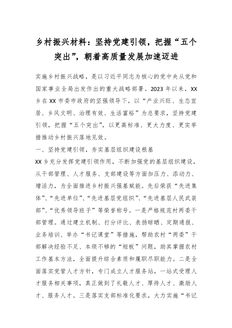 / 乡村振兴材料:坚持党建引领,把握“五个突出”,朝着高质量发展加速迈进