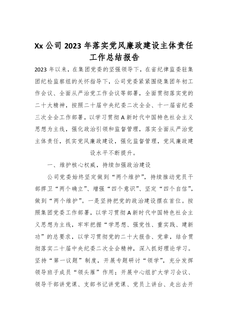 / Xx公司2023年落实党风廉政建设主体责任工作总结报告