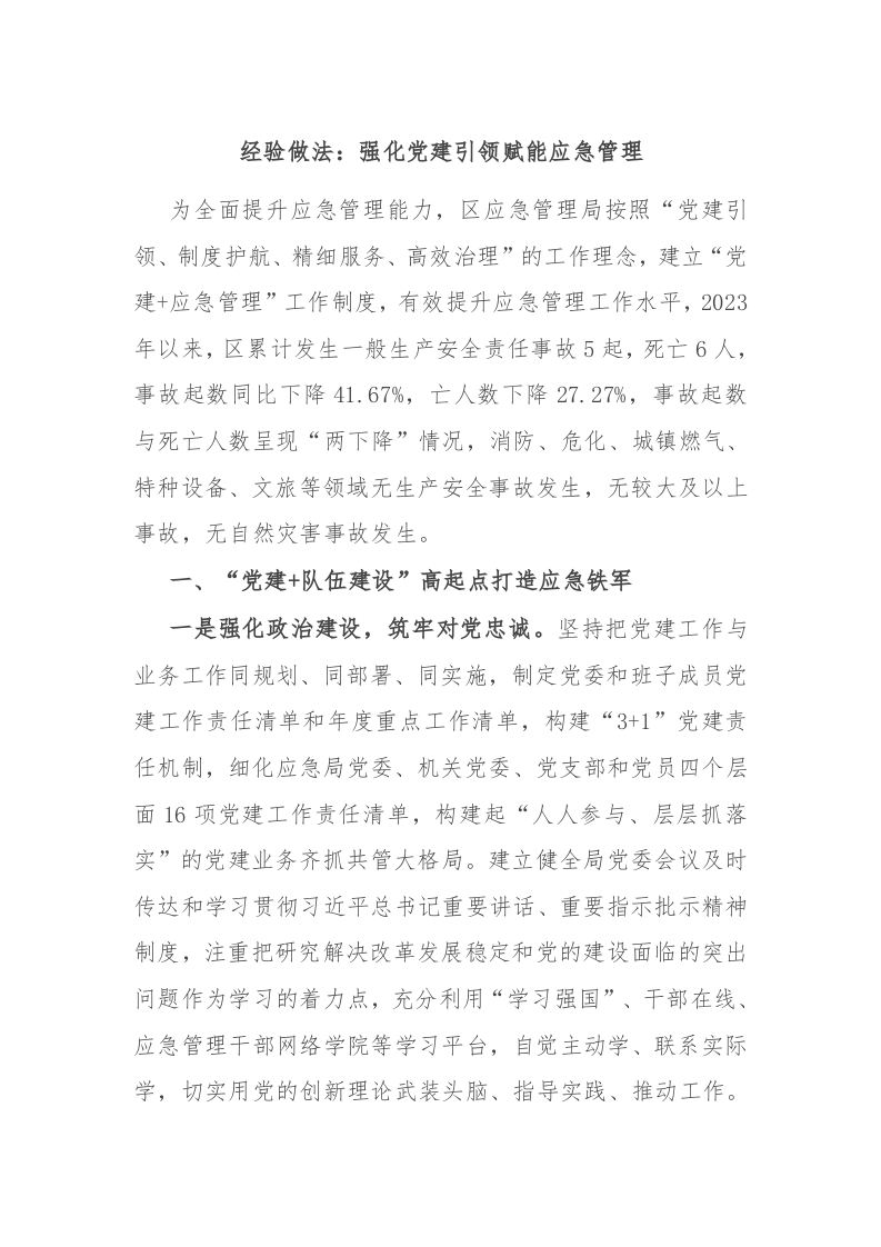 / 经验做法:强化党建引领 赋能应急管理