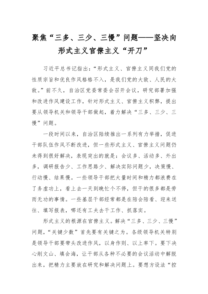 / 聚焦“三多、三少、三慢”问题——坚决向形式主义官僚主义“开刀”