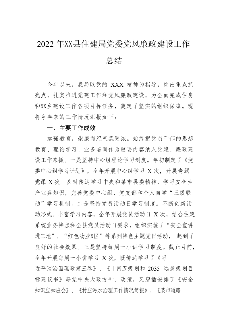 / 2022年度县住建局党委党风廉政建设工作总结