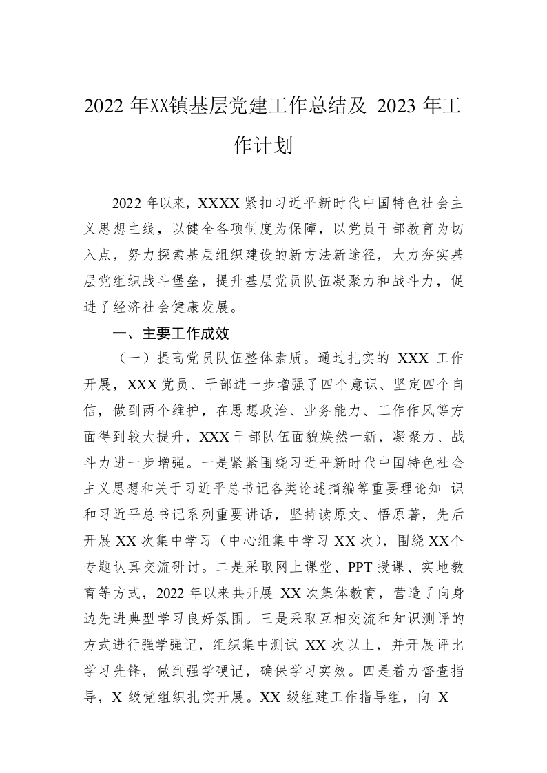 / 2022年度乡镇基层党建工作总结及2023年工作计划