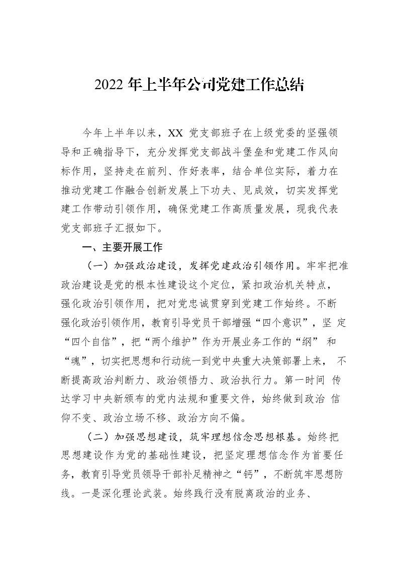 / 2022年上半年公司党建工作总结2
