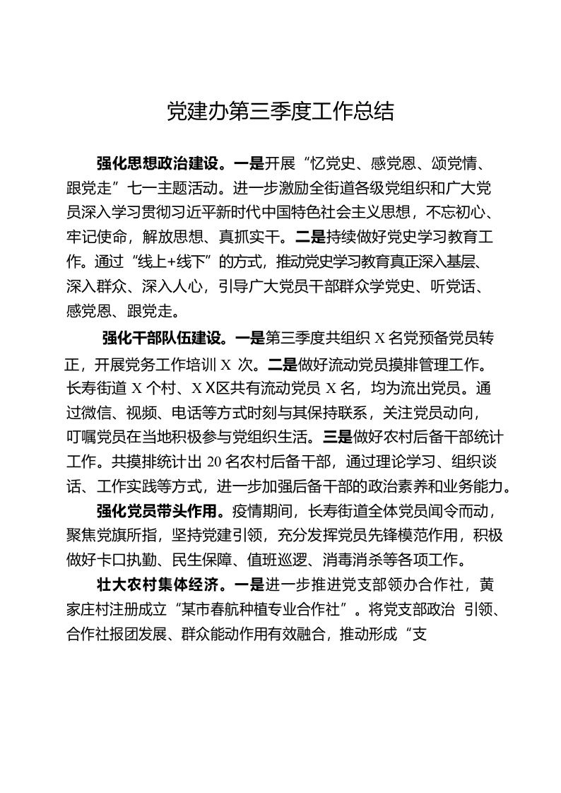 / 党建办第三季度工作总结