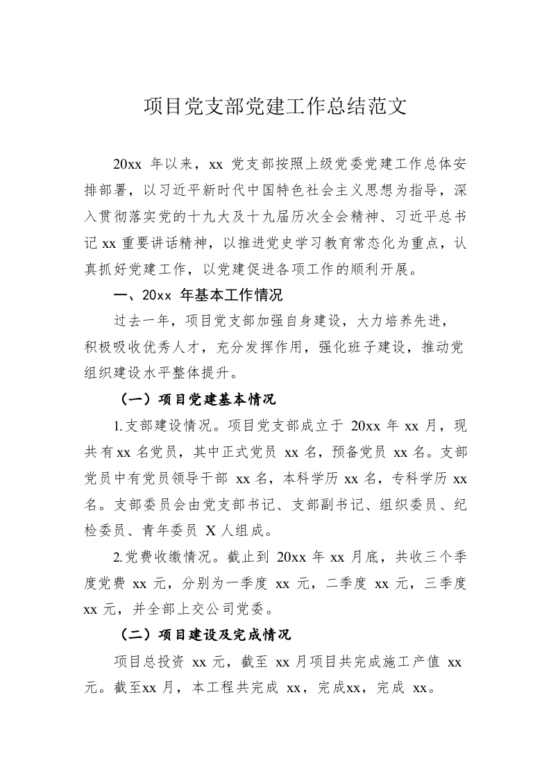 项目党支部党建工作总结范文