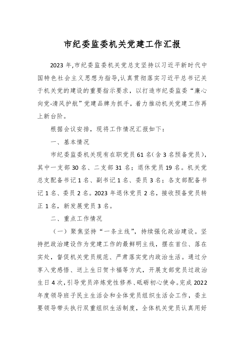 / 市纪委监委机关党建工作汇报