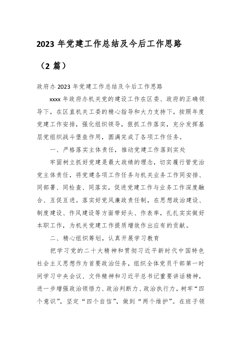 / (2篇)2023年党建工作总结及今后工作思路
