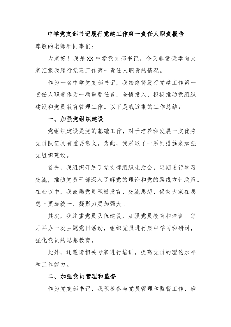 / 中学党支部书记履行党建工作第一责任人职责报告