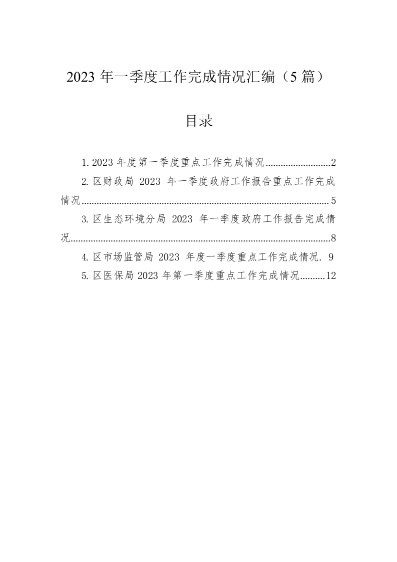 2023年一季度工作完成情况汇编(5篇)