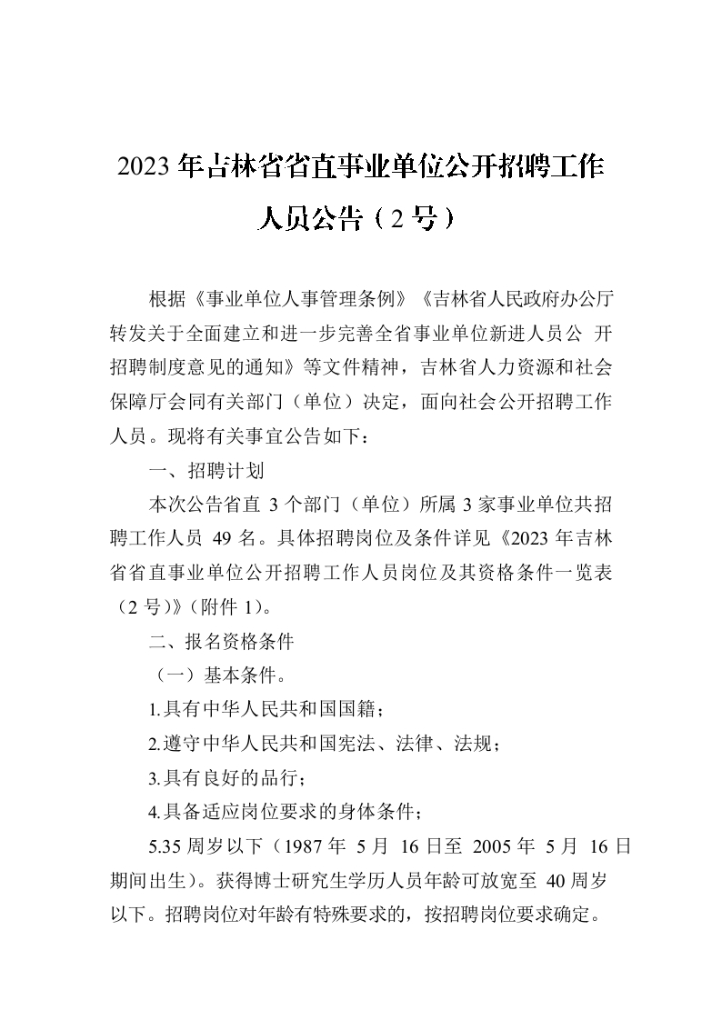 / 2023年吉林省省直事业单位公开招聘工作人员公告(2号)