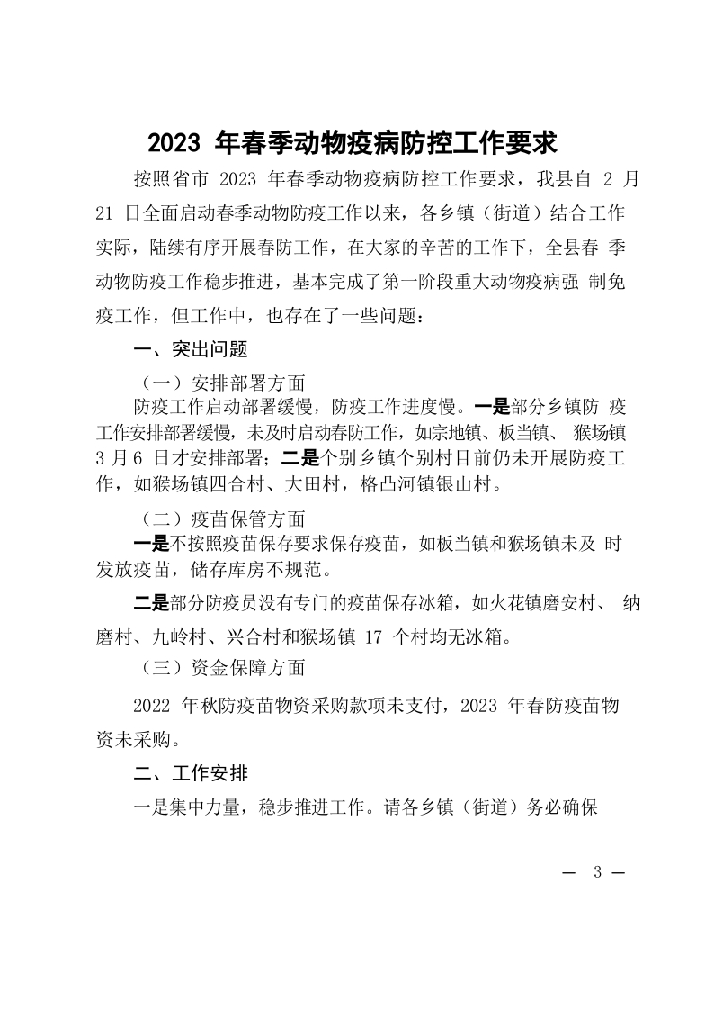 2023年春季动物疫病防控工作要求