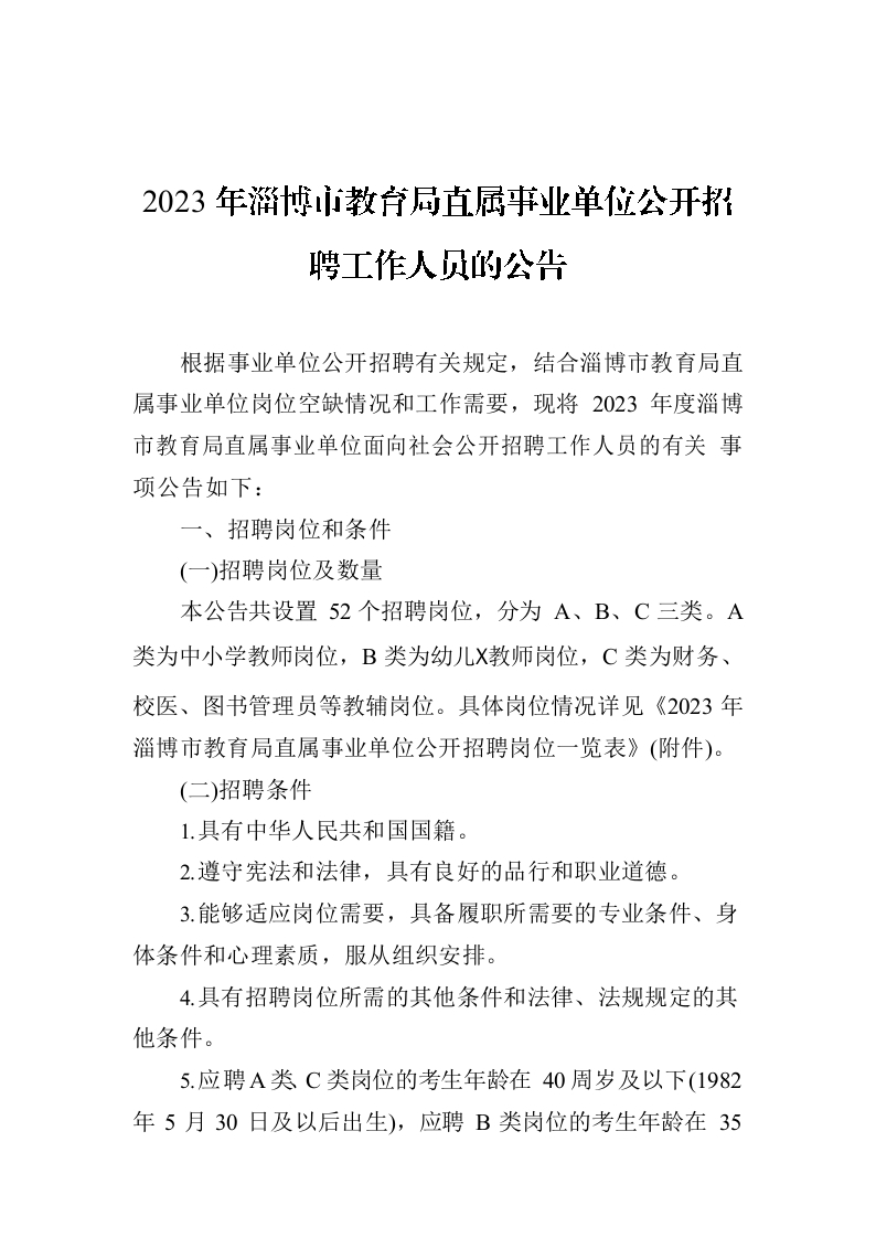 / 2023年淄博市教育局直属事业单位公开招聘工作人员的公告