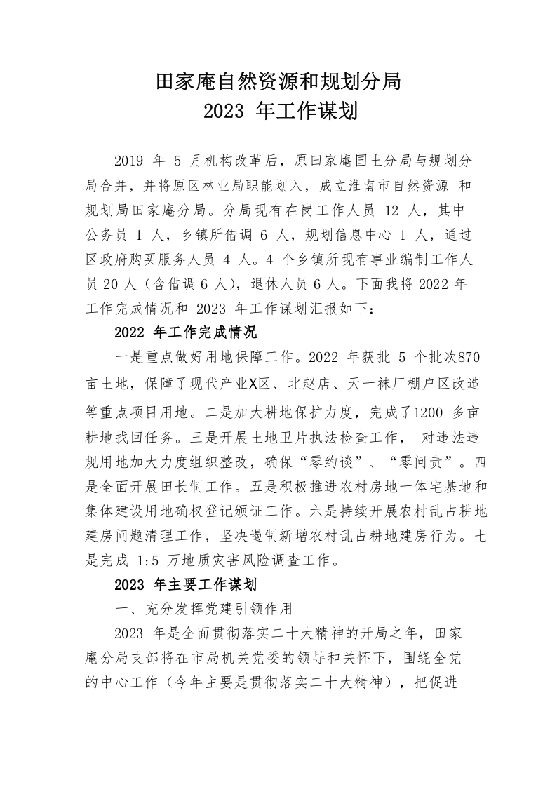 / 2023年田家庵分局工作谋划(20230218)