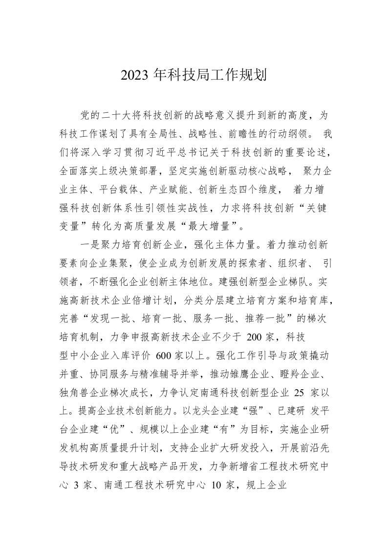 / 2023年科技局工作规划