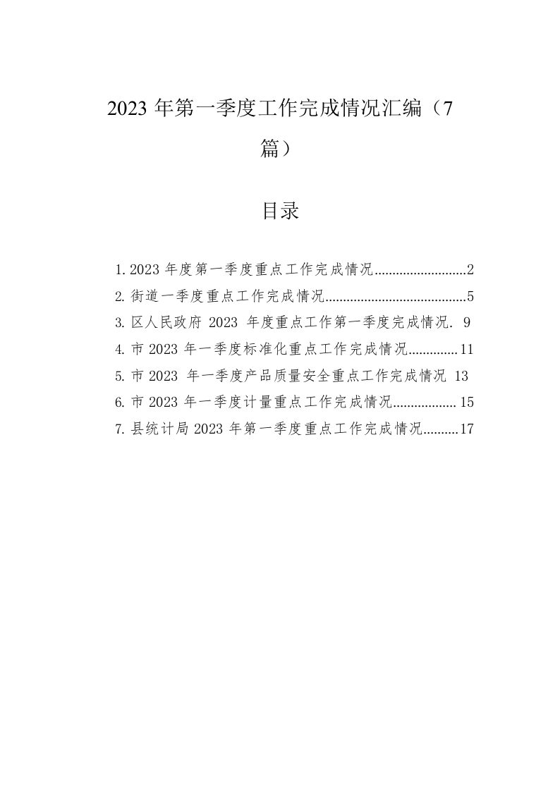 2023年第一季度工作完成情况汇编(7篇)