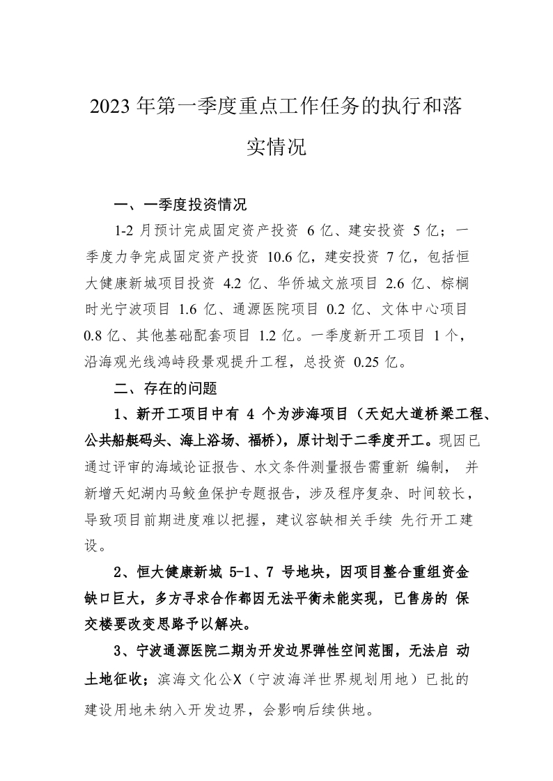 / 2023年第一季度重点工作任务的执行和落实情况(20230504)