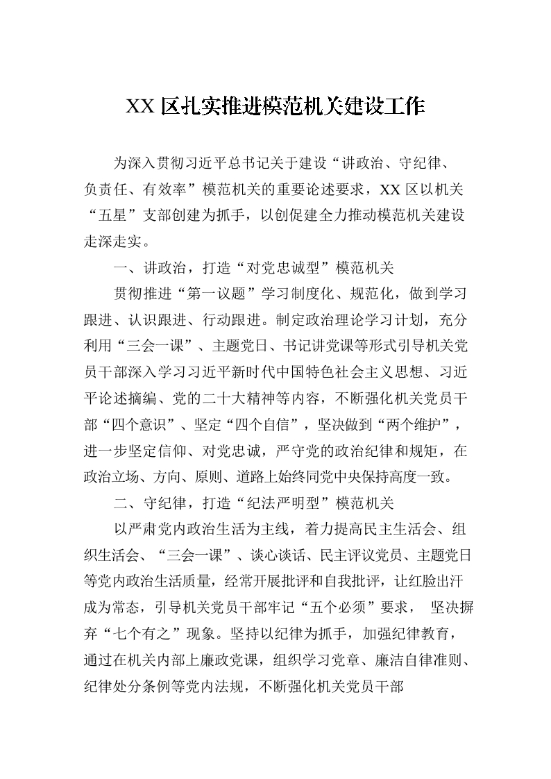 / XX区扎实推进模范机关建设工作(20230728)