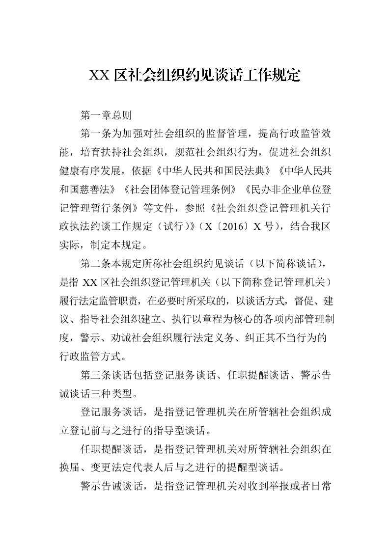 / XX区社会组织约见谈话工作规定