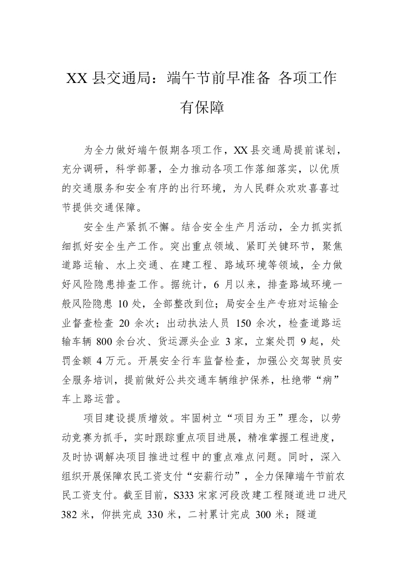 / XX县交通局:端午节前早准备 各项工作有保障(20230616)