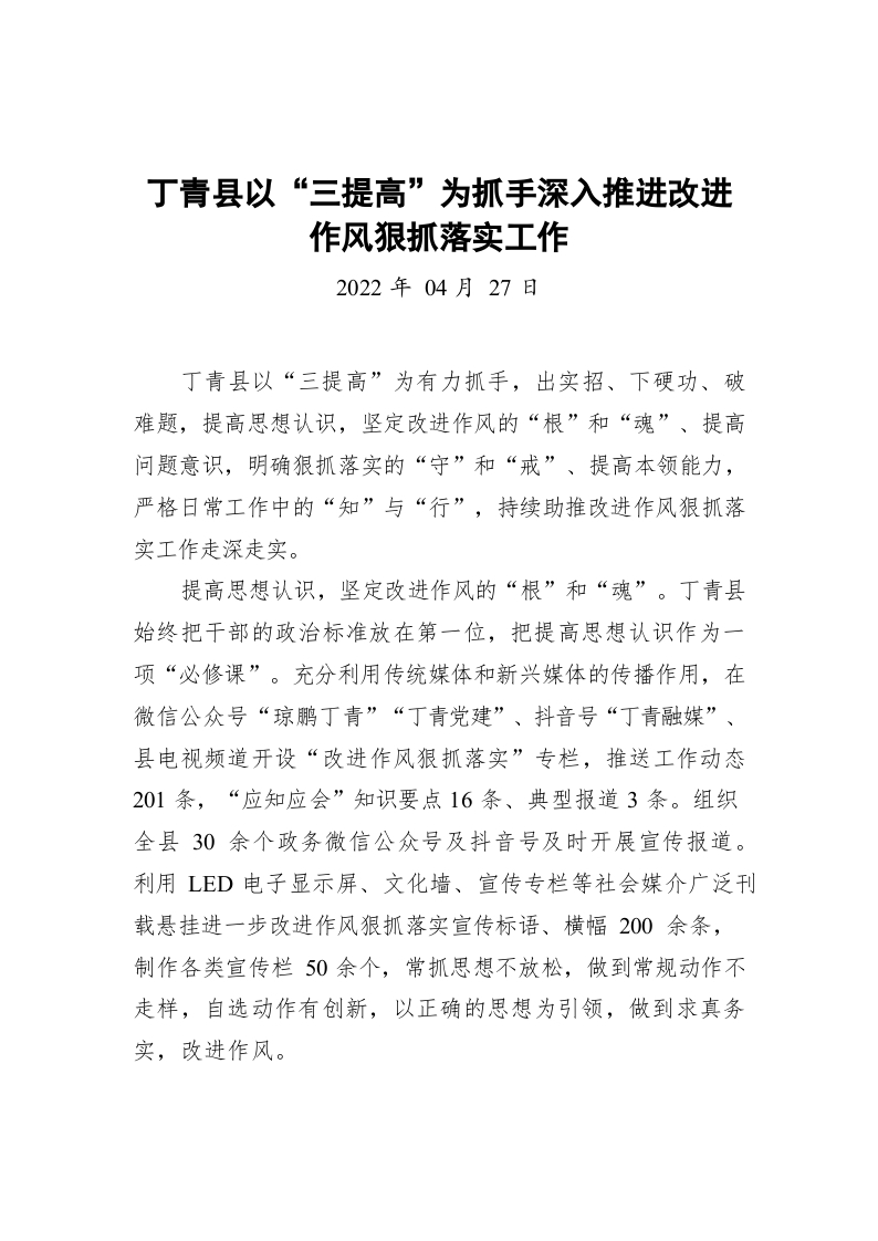 XX县以“三提高”为抓手深入推进改进作风狠抓落实工作