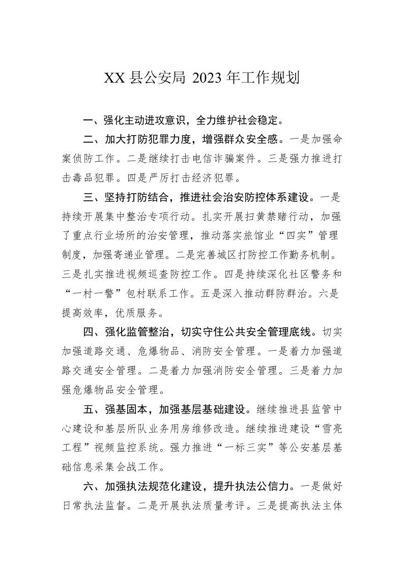 / XX县公安局2023年工作规划