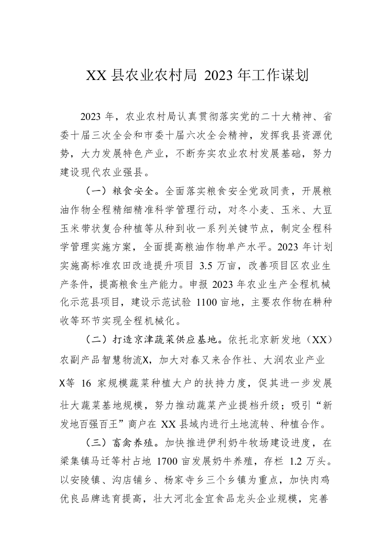 / XX县农业农村局2023年工作谋划