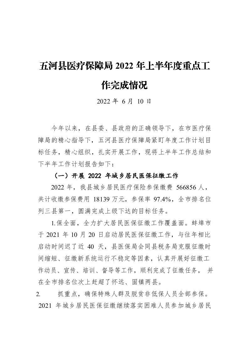 / XX县医疗保障局2022年上半年度重点工作完成情况(20220610)