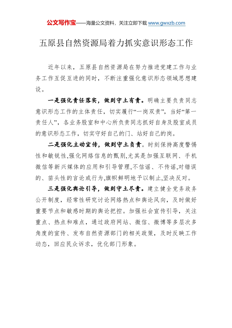 / XX县自然资源局着力抓实意识形态工作