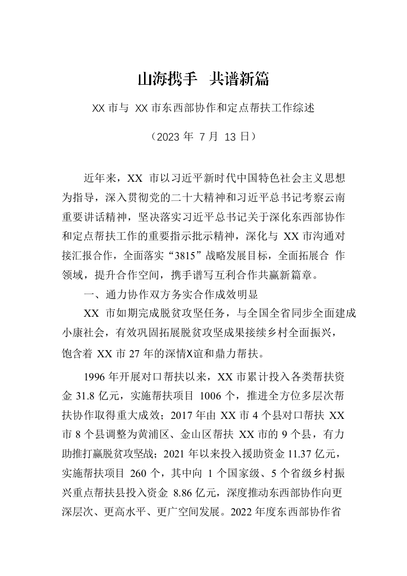 / XX市与XX市东西部协作和定点帮扶工作综述