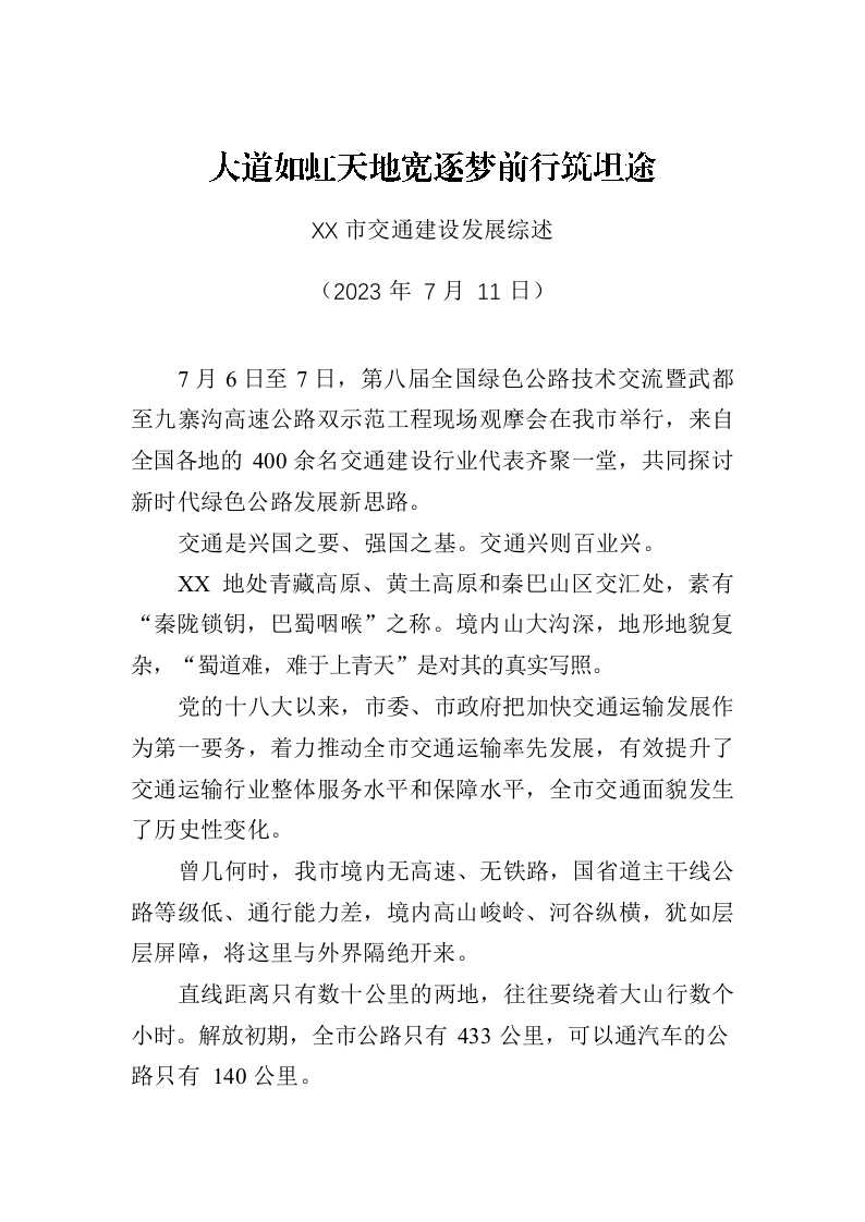 / XX市交通建设发展综述