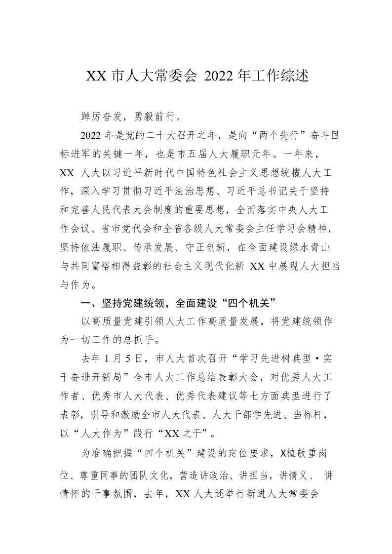 / XX市人大常委会2022年工作综述(20230105)