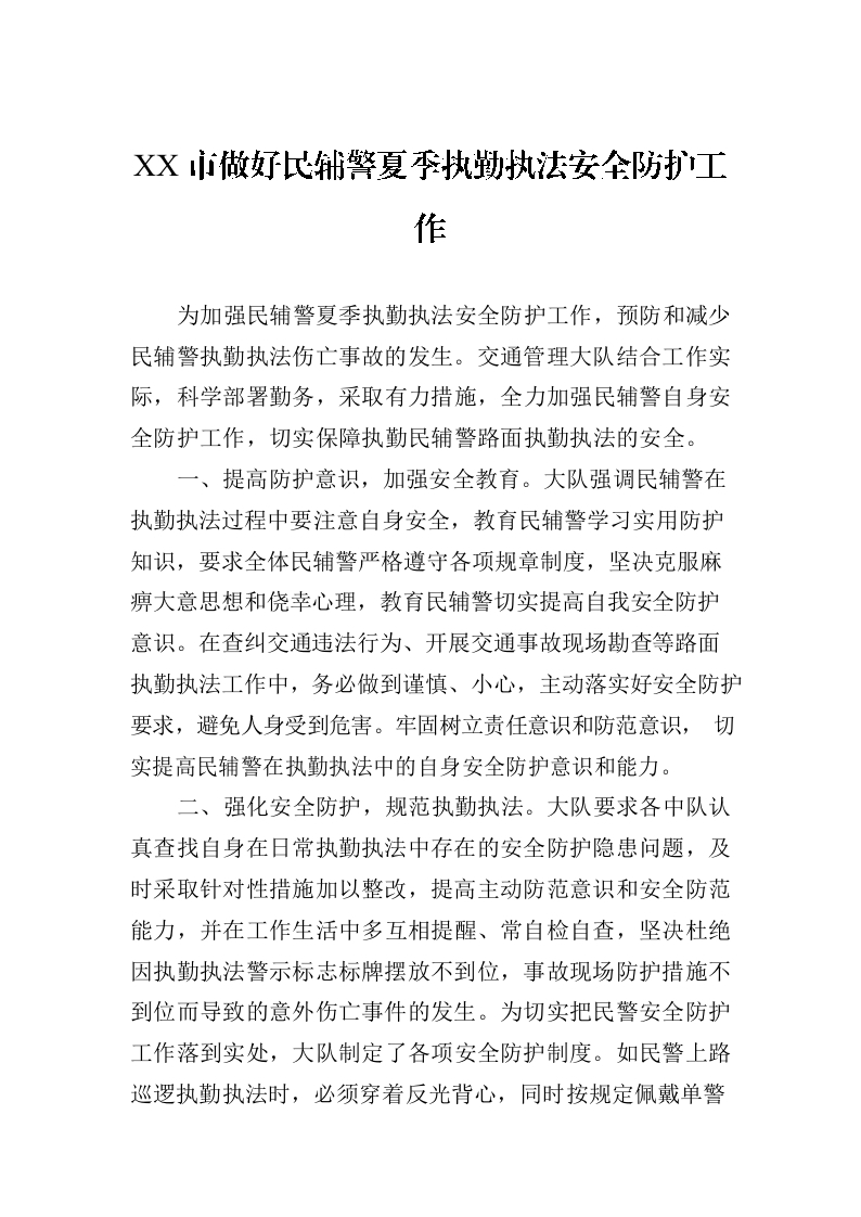 / XX市做好民辅警夏季执勤执法安全防护工作(20230710)