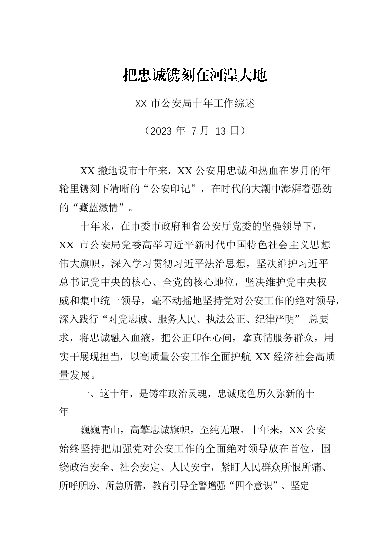 / XX市公安局十年工作综述