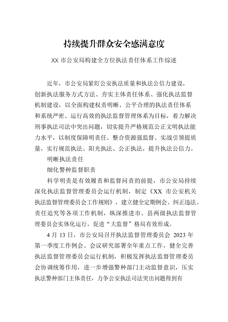 / XX市公安局构建全方位执法责任体系工作综述