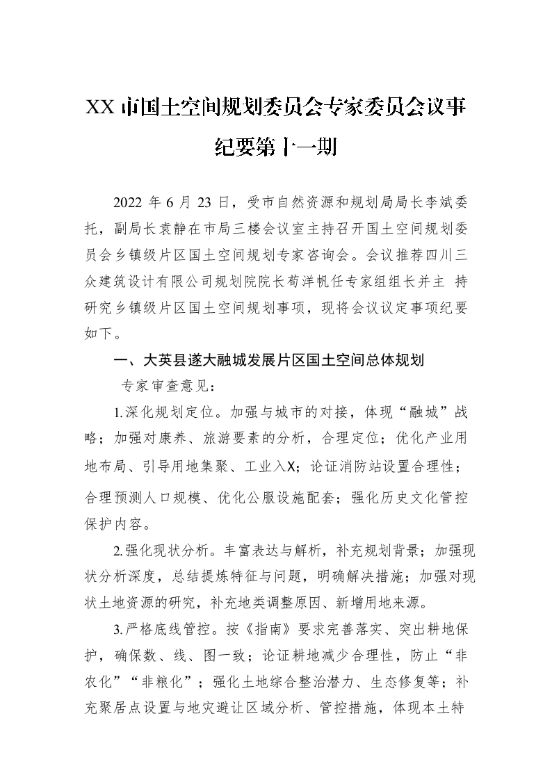 / XX市国土空间规划委员会专家委员会议事纪要第十一期(20220623)