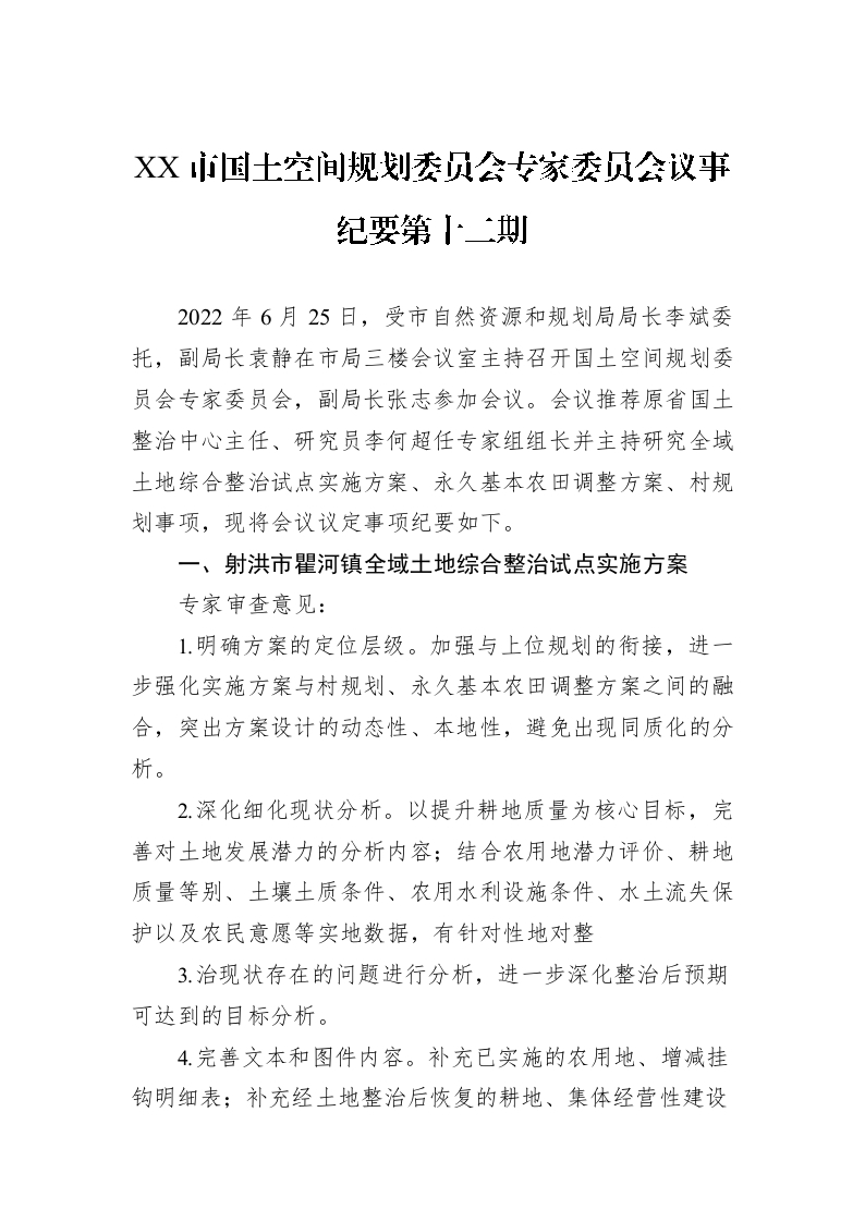 / XX市国土空间规划委员会专家委员会议事纪要第十二期(20220625)