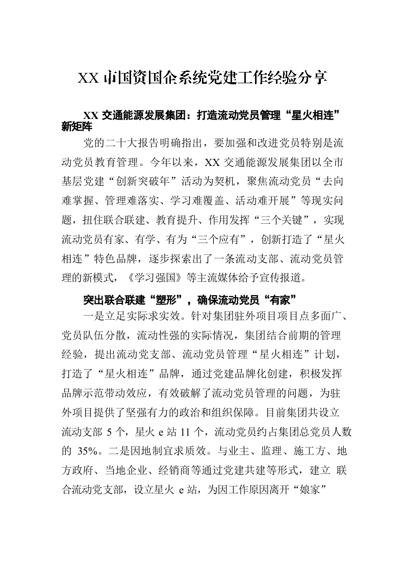 / XX市国资国企系统党建工作经验分享