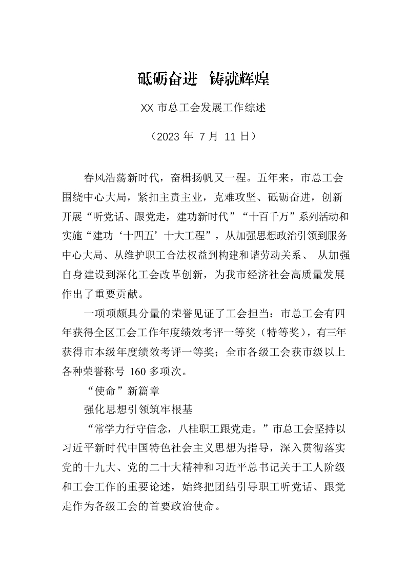 / XX市总工会发展工作综述