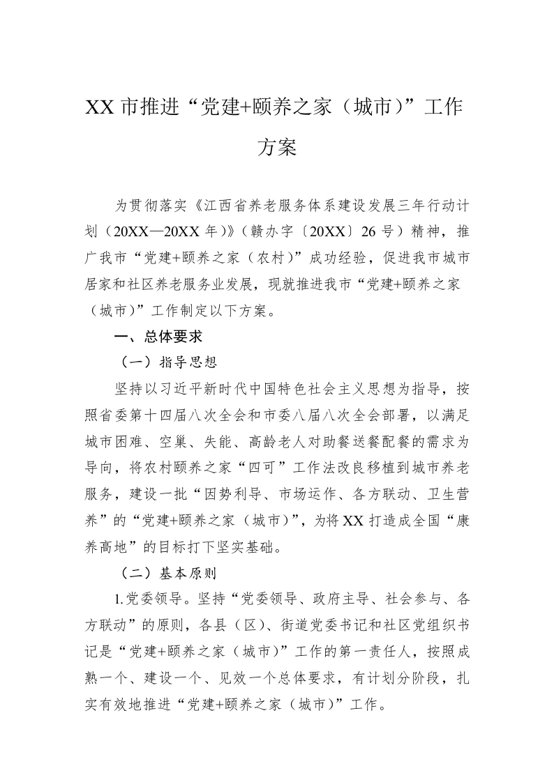 / XX市推进“党建 颐养之家(城市)”工作方案