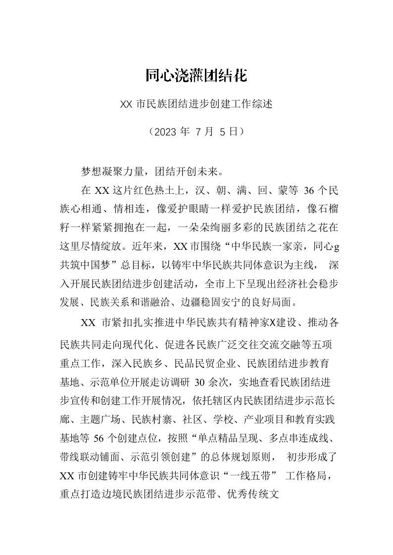 / XX市民族团结进步创建工作综述