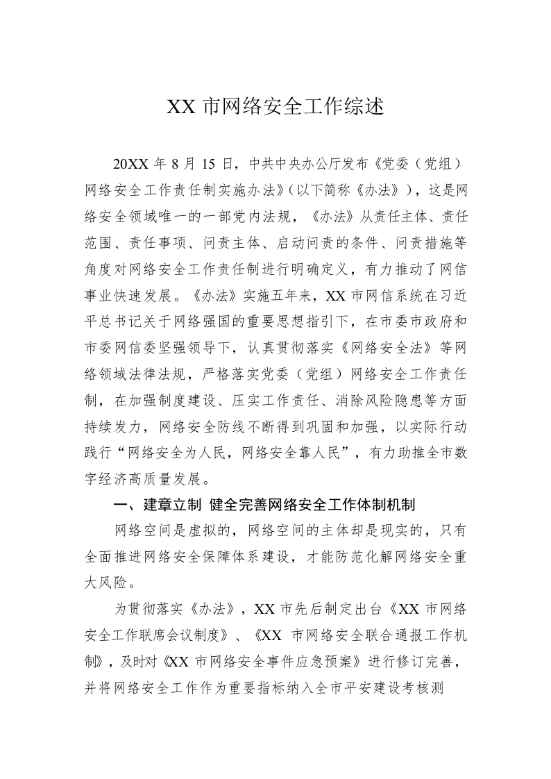 / XX市网络安全工作综述(20220817)
