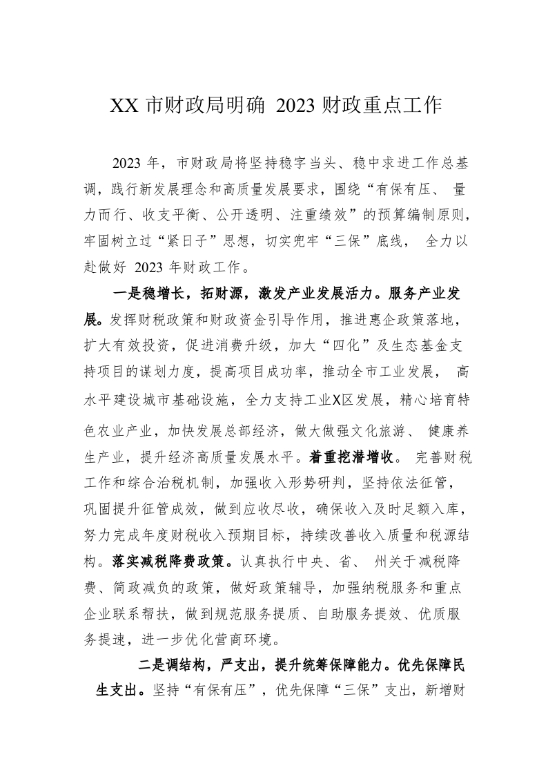 / XX市财政局明确2023财政重点工作(20230105)