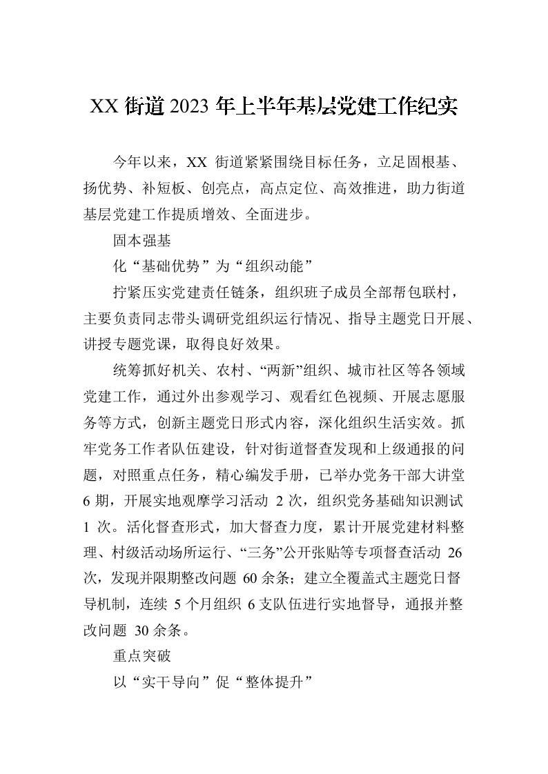 / XX街道2023年上半年基层党建工作纪实(20230720)