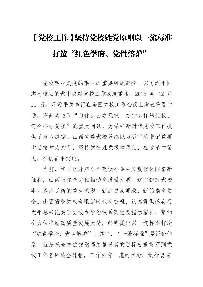 / 【党校工作】坚持党校姓党原则以一流标准打造“红色学府、党性熔炉”