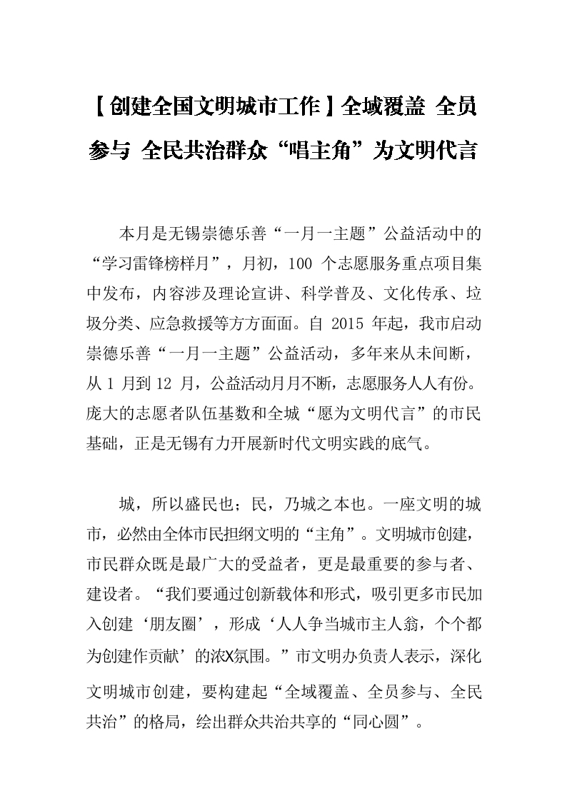 / 【创建全国文明城市工作】全域覆盖 全员参与 全民共治群众“唱主角”为文明代言