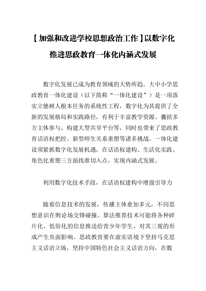 【加强和改进学校思想政治工作】以数字化推进思政教育一体化内涵式发展